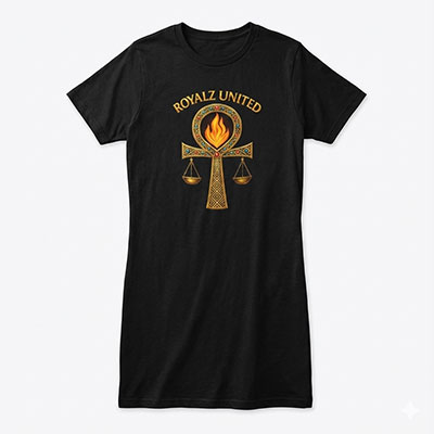 Cotton black tee dress with our gold logo.